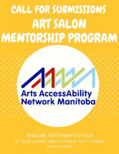 Arts AccessAbility Network Manitoba (AANM) is now accepting applications for the new fall mentorship AANM Art Salons. The Art Salons will feature three outstanding leaders in the disability community from different artistic practices. This program is for emerging artists (visual, literacy and performance based) to receive critical feedback and engage in group discussions about their work